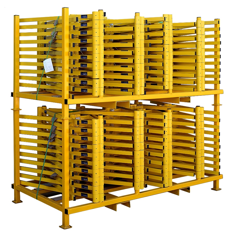 The Barricade stillage has a unique design which allows you to fit Eureka Barricade legs in between these profiles. The heavy duty legs are stored vertically on top of one another without damage, preventing the legs from falling over.
